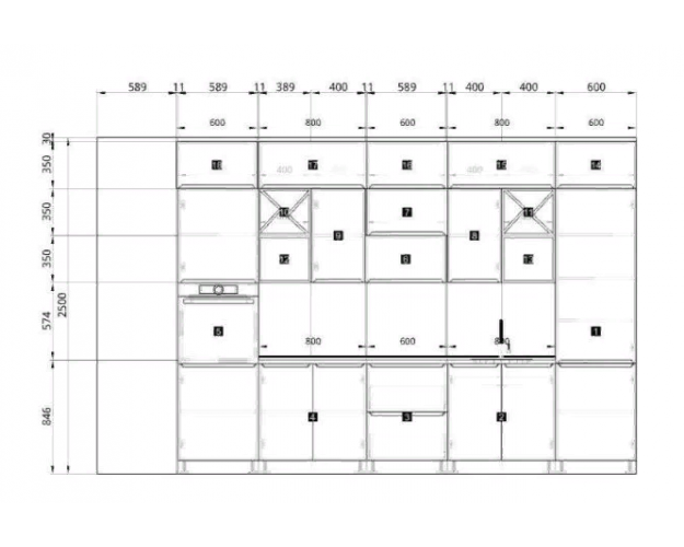 Размер: Ширина 3400 мм, Высота 2500 мм, Глубина 600 мм